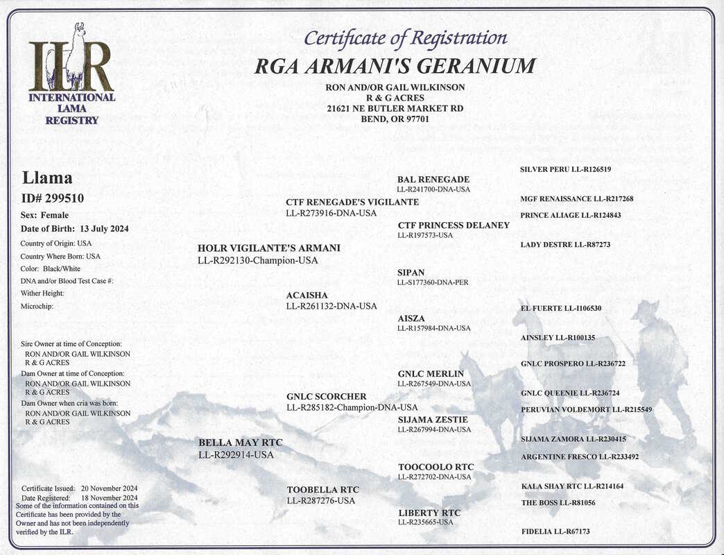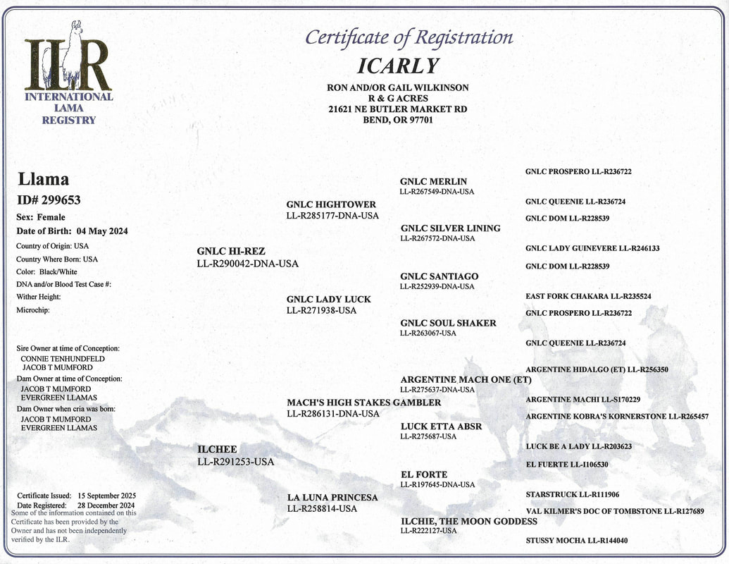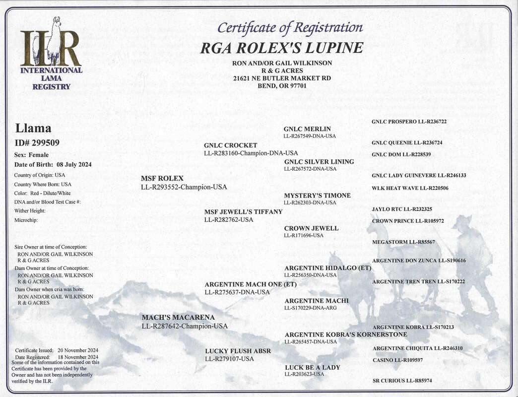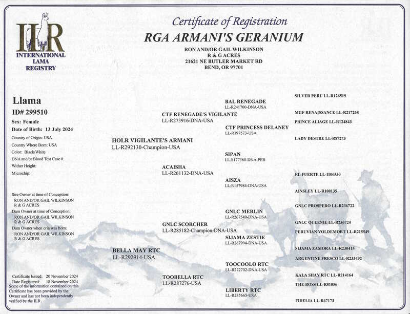 These original animals have had a huge impact on the USA llama gene pool. While numbers of full Argentine llamas remain relatively small, many breeders have chosen to add Argentine influence to their breeding program. Many believe the role of these special animals in increasing fiber density, coverage, and quality is the key to the North American llama fiber industry.